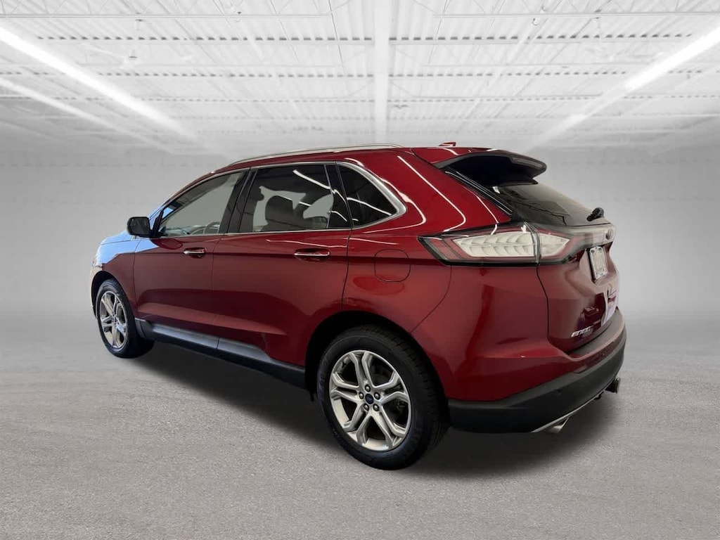 Ruby Red Metallic 2018 Ford Edge Titanium FWD 6-Speed Automatic EcoBoost 2.0L I4 GTDi DOHC Turbocharged VCT Dealer Detailed, Fluid Change, Dealer Inspected, Multi Point Safety and Mechanical Inspection Performed by Certified Technician, Many Extras!, 110V/150W AC Power Outlet, 12 Speakers, 4-Wheel Disc Brakes, ABS brakes, Air Conditioning, AM/FM radio: SiriusXM, AM/FM Stereo w/Single CD Player, Apple CarPlay/Android Auto, Auto-dimming Rear-View mirror, Automatic temperature control, Brake assist, Bumpers: body-color, Cargo Accessory Package, Cargo Mat, CD player, Class II Trailer Tow Package, Delay-off headlights, Driver door bin, Dual front impact airbags, Dual front side impact airbags, Electronic Stability Control, Emergency communication system: SYNC 3 911 Assist, Equipment Group 300A, Exterior Parking Camera Rear, Four wheel independent suspension, Front Bucket Seats, Front dual zone A/C, Fully automatic headlights, Garage door transmitter, Heated door mirrors, Heated front seats, Illuminated entry, Leather Shift Knob, Leather-Trimmed Heated Sport Bucket Seats, Low tire pressure warning, Memory seat, Outside temperature display, Overhead console, Panic alarm, Power door mirrors, Power driver seat, Power Liftgate, Power passenger seat, Power steering, Power windows, Premium audio system: Sony, Rear Bumper Protector, Rear Parking Sensors, Rear seat center armrest, Rear window defroster, Rear window wiper, Remote keyless entry, Remote Start System, Retractable Cargo Area Cover, Security system, Silver Roof Rack Side Rails, SiriusXM Radio, SiriusXM Traffic & Travel Link, Speed control, Speed-Sensitive Wipers, Split folding rear seat, Spoiler, Steering wheel mounted audio controls, SYNC 3 Communications & Entertainment System, Tachometer, Technology Package, Telescoping steering wheel, Tilt steering wheel, Traction control, Turn signal indicator mirrors, Variably intermittent wipers, Voice-Activated Touchscreen Navigation S