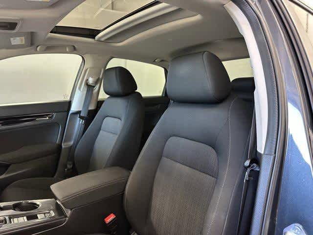 This vehicle is well equipped with many features including: Black Cloth, 4-Wheel Disc Brakes, 8 Speakers, ABS brakes, Adaptive Cruise Control: Adaptive Cruise Control (ACC) with Low-Speed Follow, Air Conditioning, AM/FM radio, Apple CarPlay/Android Auto, Auto High-beam Headlights, Automatic temperature control, Brake assist, Bumpers: body-color, Cloth Seat Trim, Delay-off headlights, Driver door bin, Dual front impact airbags, Dual front side impact airbags, Electronic Stability Control, Emergency communication system: HondaLink, Exterior Parking Camera Rear, Four wheel independent suspension, Front anti-roll bar, Front Bucket Seats, Front Center Armrest, Front dual zone A/C, Fully automatic headlights, Heated door mirrors, Heated Front Bucket Seats, Heated front seats, Illuminated entry, Leather Shift Knob, Leather steering wheel, Low tire pressure warning, Occupant sensing airbag, Outside temperature display, Overhead airbag, Panic alarm, Power door mirrors, Power moonroof, Power steering, Power windows, Radio data system, Radio: 180-Watt Audio System w/8 Speakers, Rear side impact airbag, Rear window defroster, Remote keyless entry, Security system, Speed control, Speed-sensing steering, Split folding rear seat, Steering wheel mounted audio controls, Tachometer, Telescoping steering wheel, Tilt steering wheel, Traction control, Variably intermittent wipers, and Wheels: 17 Alloy w/Gloss Black Inserts.
