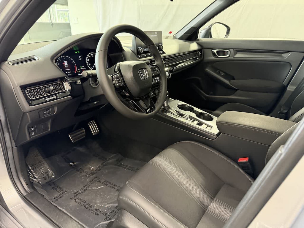 Lunar Silver Metallic 2024 Honda CARFAX One-Owner. Clean CARFAX. Civic Sport FWD CVT 2.0L I4 DOHC 16V Dealer Detailed, Fluid Change, Dealer Inspected, Multi Point Safety and Mechanical Inspection Performed by Certified Technician, Black w/Cloth/Leatherette Seating Surfaces, 18 Alloy Wheels, 4-Wheel Disc Brakes, 8 Speakers, ABS brakes, Adaptive Cruise Control: Adaptive Cruise Control (ACC) with Low-Speed Follow, Air Conditioning, Alloy wheels, AM/FM radio, Apple CarPlay/Android Auto, Auto High-beam Headlights, Automatic temperature control, Brake assist, Bumpers: body-color, Cloth/Leatherette Seating Surfaces, Delay-off headlights, Driver door bin, Dual front impact airbags, Dual front side impact airbags, Electronic Stability Control, Emergency communication system: HondaLink, Exterior Parking Camera Rear, Four wheel independent suspension, Front Bucket Seats, Front Center Armrest, Fully automatic headlights, Illuminated entry, Knee airbag, Lane departure: Lane Keeping Assist System (LKAS) active, Leather Shift Knob, Leather steering wheel, Low tire pressure warning, Outside temperature display, Panic alarm, Passenger vanity mirror, Power door mirrors, Power steering, Power windows, Radio data system, Radio: 180-Watt Audio System, Rear anti-roll bar, Rear side impact airbag, Rear window defroster, Rear window wiper, Remote keyless entry, Security system, Speed control, Speed-sensing steering, Split folding rear seat, Steering wheel mounted audio controls, Tachometer, Telescoping steering wheel, Tilt steering wheel, Traction control, Voltmeter.