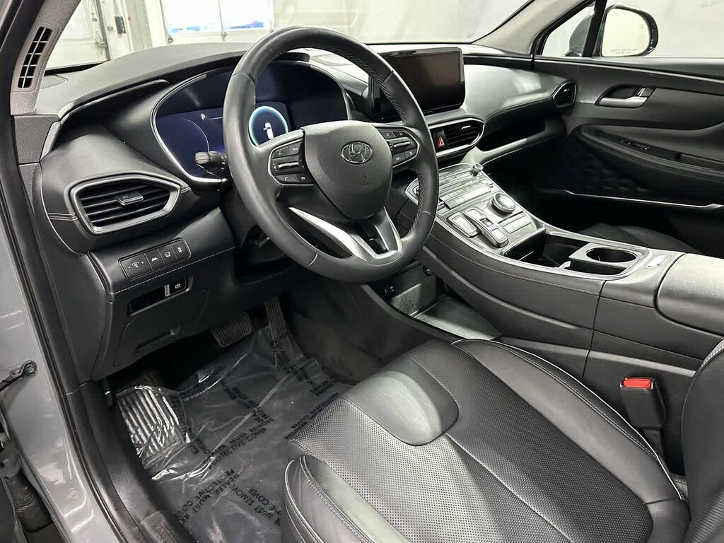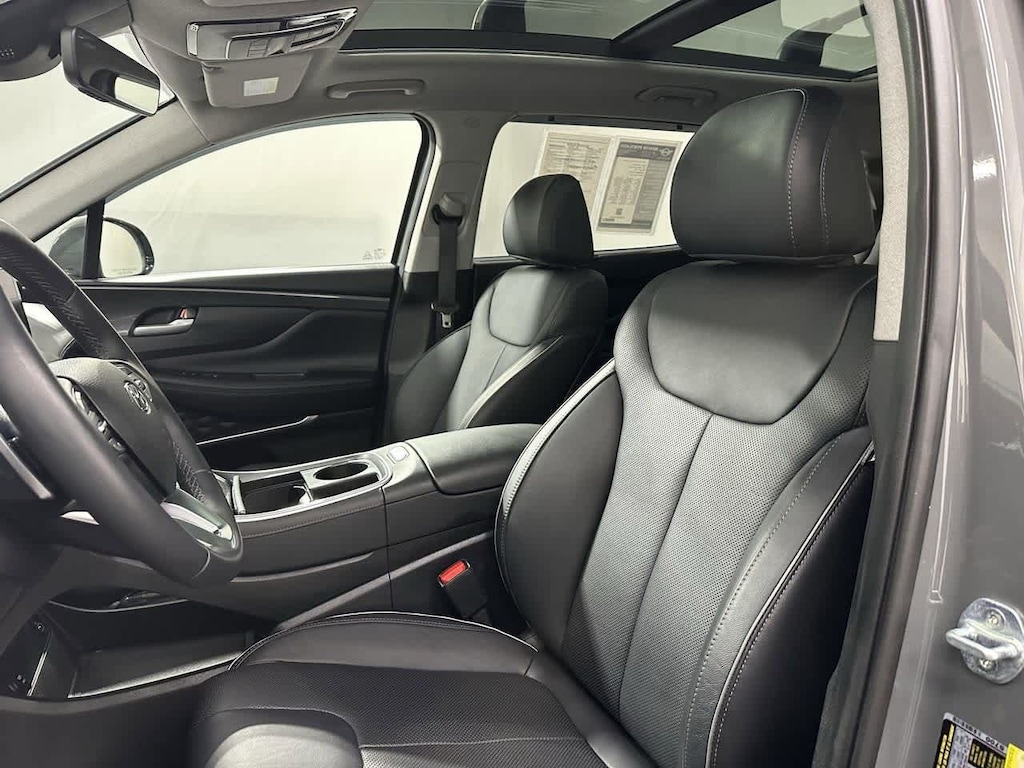 Hampton Gray 2021 Hyundai Clean CARFAX. Santa Fe Limited FWD Shiftronic 2.5L I4 Dealer Detailed, Fluid Change, Dealer Inspected, Multi Point Safety and Mechanical Inspection Performed by Certified Technician, Certified by AutoCheck - No Accidents, Many Extras!, Black Leather, 12 Speakers, 4-Wheel Disc Brakes, ABS brakes, Air Conditioning, AM/FM radio: SiriusXM, Apple CarPlay & Android Auto, Auto High-beam Headlights, Auto-dimming Rear-View mirror, Automatic temperature control, Axle Ratio: 3.316, Brake assist, Bumper Applique, Bumpers: body-color, Cargo Net, Cargo Package, Cargo Tray, Carpeted Floor Mats, Delay-off headlights, Dual front impact airbags, Dual front side impact airbags, Electronic Stability Control, Emergency communication system, First Aid Kit, Four wheel independent suspension, Front anti-roll bar, Front Bucket Seats, Front Center Armrest, Front dual zone A/C, Front reading lights, Fully automatic headlights, Garage door transmitter: HomeLink, harman/kardonî Speakers, Heated & Ventilated Front Bucket Seats, Heated door mirrors, Heated front seats, Heated rear seats, Heated steering wheel, Illuminated entry, Leather Seat Trim, Leather steering wheel, Low tire pressure warning, Memory seat, Navigation System, Occupant sensing airbag, Option Group 01, Outside temperature display, Overhead console, Panic alarm, Passenger door bin, Passenger vanity mirror, Power door mirrors, Power driver seat, Power Liftgate, Power moonroof, Power passenger seat, Power steering, Power windows, Radio: AM/FM/MP3 Harman Kardon Display Audio, Rain sensing wipers, Rear seat center armrest, Rear window defroster, Rear window wiper, Remote keyless entry, Roof Rack Cross Bars, Security system, Speed control, Speed-sensing steering, Split folding rear seat, Spoiler, Steering wheel mounted audio controls, Tachometer, Telescoping steering wheel, Tilt steering wheel, Traction control, Turn signal indicator mirrors, Variably intermittent wip