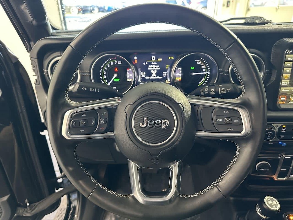 Black Clearcoat 2022 Jeep CARFAX One-Owner. Clean CARFAX. Wrangler Unlimited Sahara 4xe 4WD 8-Speed Automatic 2.0L I4 DOHC Dealer Detailed, Dealer Inspected, Multi Point Safety and Mechanical Inspection Performed by Certified Technician, Certified by AutoCheck - No Accidents, Certified by AutoCheck - One Owner, Many Extras!, Great Value, 2.0L I4 DOHC, 4-Wheel Disc Brakes, 9 Speakers, ABS brakes, Air Conditioning, Alloy wheels, AM/FM radio, Apple CarPlay/Android Auto, Auto-dimming Rear-View mirror, Automatic temperature control, Black 3-Piece Hard Top, Brake assist, Cold Weather Group, Compass, Delay-off headlights, Dual front impact airbags, Dual front side impact airbags, Electronic Stability Control, Emergency communication system: SiriusXM Guardian, Freedom Panel Storage Bag, Front anti-roll bar, Front Bucket Seats, Front dual zone A/C, Front fog lights, Fully automatic headlights, Heated door mirrors, Heated Front Seats, Heated Steering Wheel, Illuminated entry, Integrated roll-over protection, Low tire pressure warning, Navigation System, No Soft Top, Occupant sensing airbag, Panic alarm, ParkView Rear Back-Up Camera, Passenger door bin, Power door mirrors, Power steering, Power windows, Premium McKinley Trimmed Seats, Radio data system, Radio: Uconnect 4C Nav w/8.4 Display, Rear reading lights, Rear seat center armrest, Rear Window Defroster, Rear Window Wiper/Washer, Remote keyless entry, Remote Start System, Security system, Speed control, Split folding rear seat, Sport Suspension, Steering wheel mounted audio controls, Tachometer, Telescoping steering wheel, Tilt steering wheel, Traction control, Variably intermittent wipers, Voltmeter, Wheels: 20 x 8 Fully Painted Aluminum.
