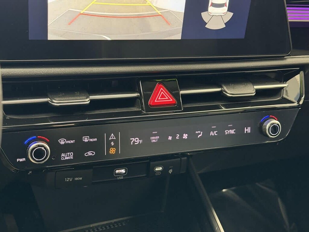 This vehicle is well equipped with many features including: 1.6L I4 DGI Hybrid DOHC 16V LEV3-SULEV30, 4-Wheel Disc Brakes, 6 Speakers, ABS brakes, Air Conditioning, Alloy wheels, AM/FM radio: SiriusXM, Apple CarPlay & Android Auto, Auto High-beam Headlights, Automatic temperature control, Brake assist, Bumpers: body-color, Carpet Floor Mats, Cloth & Vegan Leather-Trimmed Seats, Delay-off headlights, Driver vanity mirror, Dual front impact airbags, Dual front side impact airbags, Electronic Stability Control, Emergency communication system: Kia Connect (includes 1 year free trial), Exterior Parking Camera Rear, Four wheel independent suspension, Front anti-roll bar, Front Bucket Seats, Front Center Armrest, Front dual zone A/C, Fully automatic headlights, Heated door mirrors, Heated Front Bucket Seats, Heated front seats, Illuminated entry, Knee airbag, Leather Shift Knob, Low tire pressure warning, Navigation System, Occupant sensing airbag, Outside temperature display, Overhead airbag, Overhead console, Panic alarm, Power door mirrors, Power driver seat, Power steering, Power windows, Radio: AM/FM/HD/SiriusXM, Rear window defroster, Rear window wiper, Remote keyless entry, Security system, Smart Key w/ Push Button and Remote Start, Speed control, Speed-sensing steering, Split folding rear seat, Steering wheel mounted audio controls, Telescoping steering wheel, Tilt steering wheel, Traction control, Trip computer, Turn signal indicator mirrors, Two-Level Luggage Board, Variably intermittent wipers, and Wheels: 16 Alloy Aero.