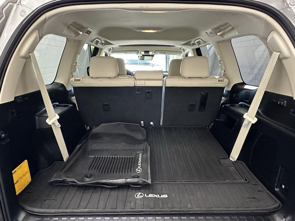 This vehicle is well equipped with many features including: Navigation Package, Premium Package (Dual Front & Rear Auto Air Conditioner, Front & Rear Heated Seats, Intuitive Parking Assist, LED Front Fog & Driving Lamp, NuLuxe Seat Trim, Ventilated Front Seats, Windshield De-Icer, and Windshield Wiper Control w/Rain Sensor), 18 x 7.5J Aluminum Alloy Wheels, 3rd row seats: split-bench, 4-Wheel Disc Brakes, 9 Speakers, ABS brakes, Air Conditioning, All-Weather Floor Liners w/Cargo Mat, Alloy wheels, AM/FM radio: SiriusXM, Anti-whiplash front head restraints, Auto High-beam Headlights, Auto tilt-away steering wheel, Auto-dimming Rear-View mirror, Automatic temperature control, Brake assist, Bumpers: body-color, CD player, Delay-off headlights, Driver vanity mirror, Drivers Seat Mounted Armrest, Dual front side impact airbags, Electronic Stability Control, Exterior Parking Camera Rear, Front Bucket Seats, Front dual zone A/C, Front reading lights, Front wheel independent suspension, Fully automatic headlights, Garage door transmitter: HomeLink, Heated door mirrors, Illuminated entry, Illuminated running boards, Leather Shift Knob, Leather steering wheel, Low tire pressure warning, Memory seat, Navigation System, NuLuxe Synthetic Leather Seat Trim, Outside temperature display, Panic alarm, Passenger seat mounted armrest, Passenger vanity mirror, Power door mirrors, Power driver seat, Power moonroof, Power passenger seat, Power steering, Power windows, Radio data system, Radio: Lexus Multimedia System, Rear side impact airbag, Rear window defroster, Rear window wiper, Remote keyless entry, Roof rack: rails only, Security system, Speed control, Speed-sensing steering, Split folding rear seat, Spoiler, Steering wheel memory, Steering wheel mounted audio controls, Telescoping steering wheel, Tilt steering wheel, Traction control, Trip computer, Turn signal indicator mirrors, and Variably intermittent wipers.