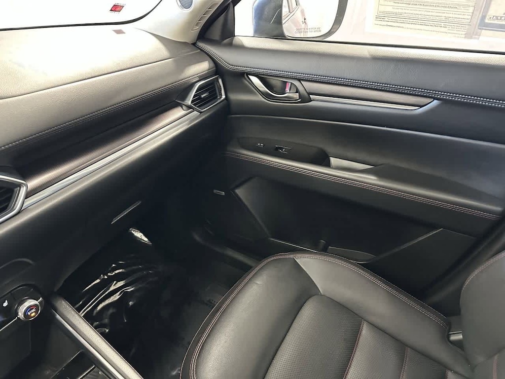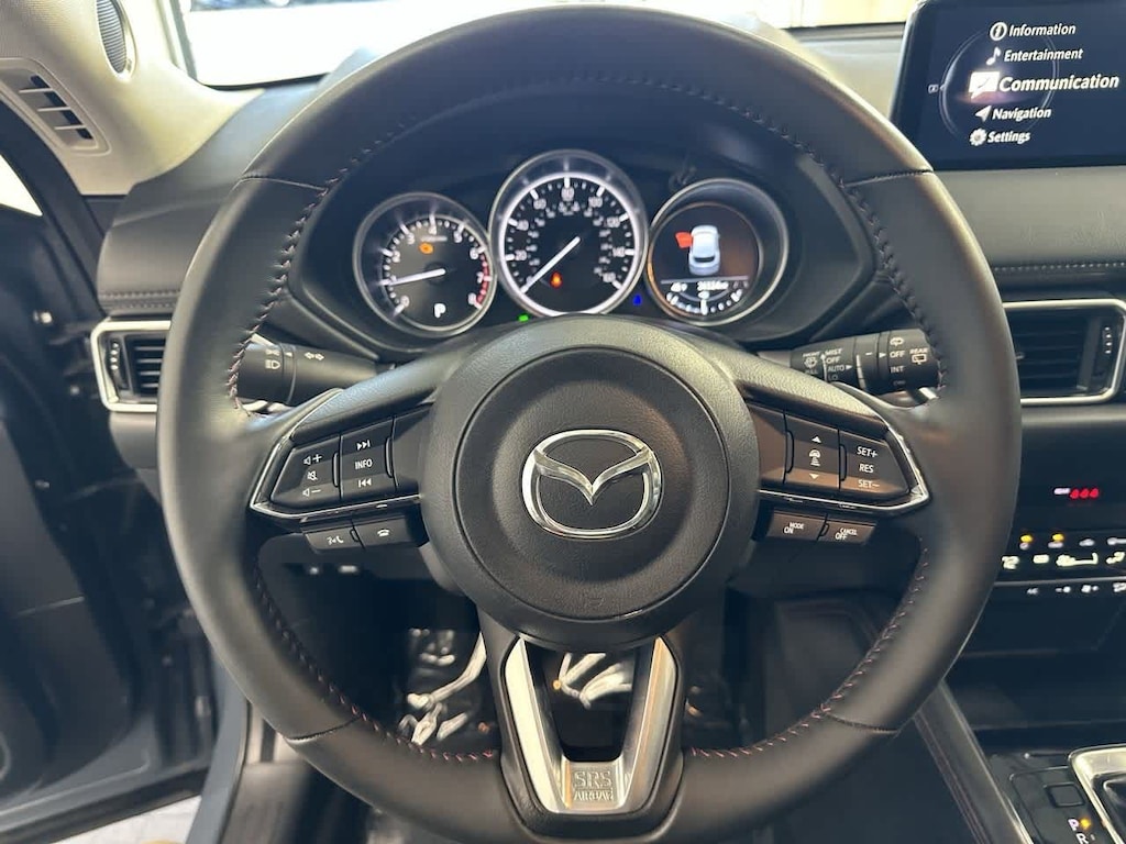 This vehicle is well equipped with many features including: 10 Speakers, 4-Wheel Disc Brakes, ABS brakes, Air Conditioning, AM/FM radio, AppLink/Apple CarPlay and Android Auto, Auto High-beam Headlights, Auto-dimming Rear-View mirror, Automatic temperature control, Brake assist, Bumpers: body-color, Delay-off headlights, Driver door bin, Dual front side impact airbags, E911 Automatic Emergency Notification, Electronic Stability Control, Emergency communication system: MAZDA CONNECT, Exterior Parking Camera Rear, Four wheel independent suspension, Front Bucket Seats, Front Center Armrest w/Storage, Front dual zone A/C, Front reading lights, Fully automatic headlights, Garage door transmitter: HomeLink, Heated Front Bucket Seats, Heated front seats, Illuminated entry, Infotainment System Voice Command, Leather Shift Knob, Leather steering wheel, Low tire pressure warning, Memory seat, Multifunction Commander Control, Occupant sensing airbag, Overhead console, Pandora, Panic alarm, Power door mirrors, Power driver seat, Power Liftgate, Power passenger seat, Power steering, Power windows, Radio Broadcast Data System Program Information, Radio data system, Radio: AM/FM/HD Audio System, Rain sensing wipers, Rear window defroster, Rear window wiper, Remote keyless entry, SMS Text Msg Audio Delivery & Reply, Speed control, Speed-sensing steering, Spoiler, Steering wheel mounted audio controls, Tachometer, Telescoping steering wheel, Tilt steering wheel, Traction control, Turn signal indicator mirrors, Variably intermittent wipers, and Wheels: 19 x 7J Aluminum Alloy.