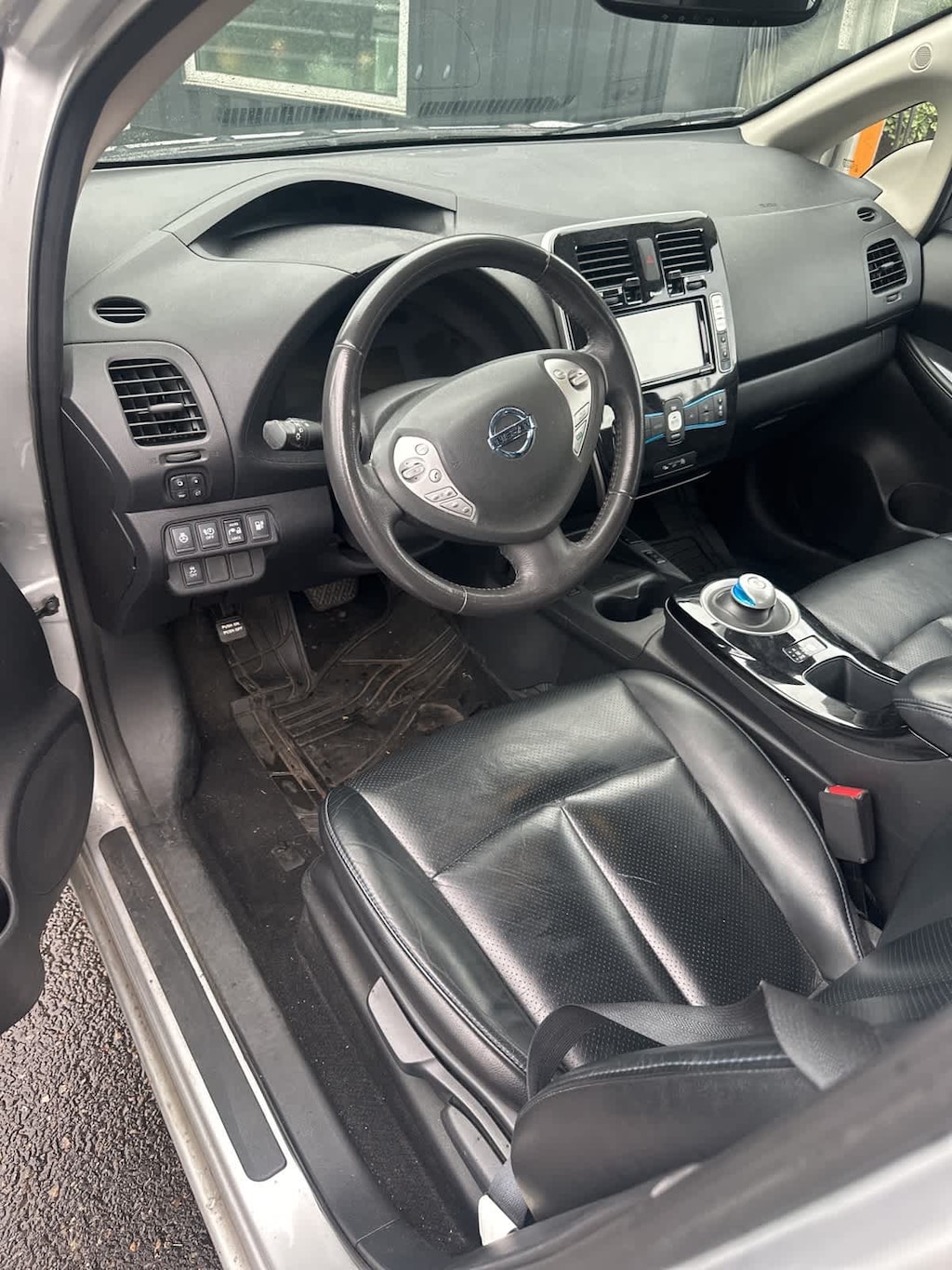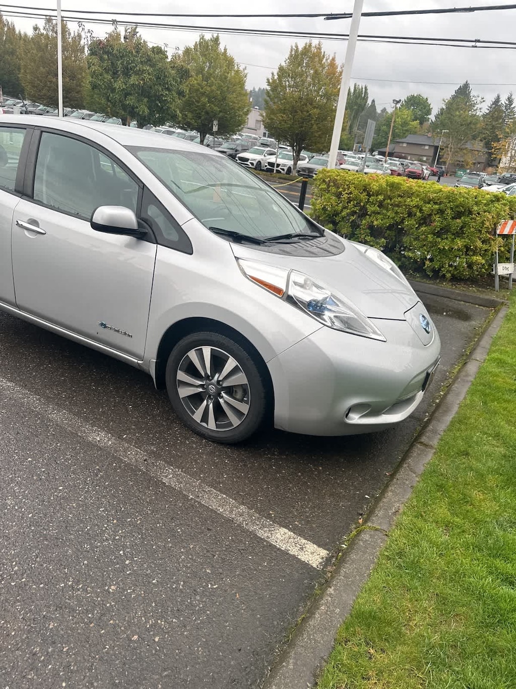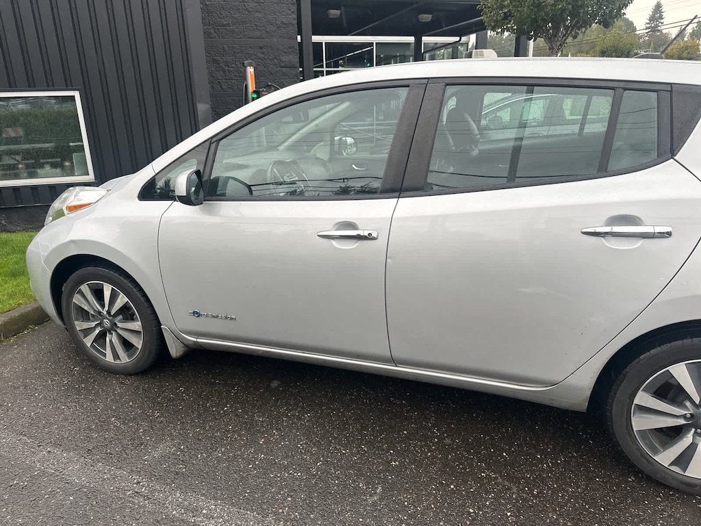 Brilliant Silver 2017 Nissan Clean CARFAX. Leaf SL FWD Single Speed Reducer Electric Motor Dealer Detailed, Fluid Change, Dealer Inspected, Multi Point Safety and Mechanical Inspection Performed by Certified Technician, Certified by AutoCheck - No Accidents, Fuel Efficient, Great Value, 17 Alloy Wheels, 4-Wheel Disc Brakes, 6 Speakers, ABS brakes, Air Conditioning, Alloy wheels, AM/FM radio: SiriusXM, Anti-whiplash front head restraints, Automatic temperature control, Brake assist, Bumpers: body-color, CD player, Electronic Stability Control, Floor Mats & Cargo Area Mat, Front anti-roll bar, Front Bucket Seats, Front Center Armrest, Front fog lights, Front reading lights, Front wheel independent suspension, Fully automatic headlights, Garage door transmitter: HomeLink, Heated door mirrors, Heated Front Bucket Seats, Heated front seats, Heated rear seats, Heated steering wheel, Illuminated entry, Leather steering wheel, Leather-Appointed Seat Trim, Low tire pressure warning, Navigation System, Occupant sensing airbag, Overhead airbag, Panic alarm, Power door mirrors, Power steering, Power windows, Radio: AM/FM/Single In-Dash CD/MP3/WMA/Navigation, Rear window defroster, Rear window wiper, Remote keyless entry, Safety Kit, Security system, Speed control, Speed-sensing steering, Splash Guards (DISC), Split folding rear seat, Spoiler, Steering wheel mounted audio controls, Tilt steering wheel, Traction control, Trip computer, Variably intermittent wipers.