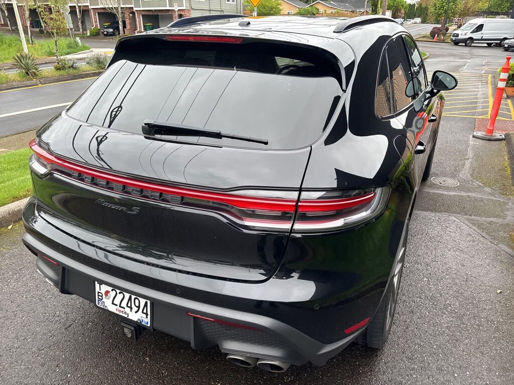 Black 2022 Porsche Clean CARFAX. Macan S AWD 7-Speed Porsche Doppelkupplung (PDK) V6 Dealer Detailed, Fluid Change, Dealer Inspected, Multi Point Safety and Mechanical Inspection Performed by Certified Technician, Certified by AutoCheck - No Accidents, Many Extras!, 10 Speakers, 14-Way Power Seats, 4-Wheel Disc Brakes, 8-Way Power Seats, ABS brakes, Air Conditioning, Alloy wheels, AM/FM radio: SiriusXM, Apple CarPlay & Android Auto, Auto-dimming door mirrors, Auto-dimming Rear-View mirror, Automatic temperature control, BOSE Surround Sound System, Brake assist, Bumpers: body-color, Center Console Armrest w/Porsche Crest, Delay-off headlights, Dual front impact airbags, Dual front side impact airbags, Electronic Stability Control, Emergency communication system: Car Connect Services, Exterior Parking Camera Rear, Four wheel independent suspension, Front & Rear Heated Seats, Front Bucket Seats, Front dual zone A/C, Fully automatic headlights, Garage door transmitter: HomeLink, Heated door mirrors, Heated front seats, Illuminated entry, Interior Trim in Carbon Fiber, Lane Change Assist (LCA), Leather Shift Knob, Leather steering wheel, LED Headlights w/Dynamic Light System Plus, Low tire pressure warning, Memory seat, Navigation System, Occupant sensing airbag, Outside temperature display, Overhead console, Panic alarm, Panoramic Roof System, Partial Leather Seat Trim w/Sport-Tex, Passenger vanity mirror, Porsche Communication Management, Porsche Crest on Front Headrests, Porsche Logo & Model Designation in Satin Black, Power door mirrors, Power driver seat, Power Liftgate, Power passenger seat, Power steering, Power windows, Premium Package Plus, Radio data system, Rain sensing wipers, Re