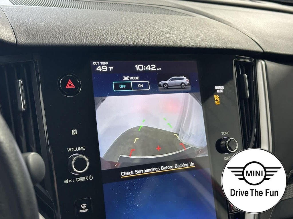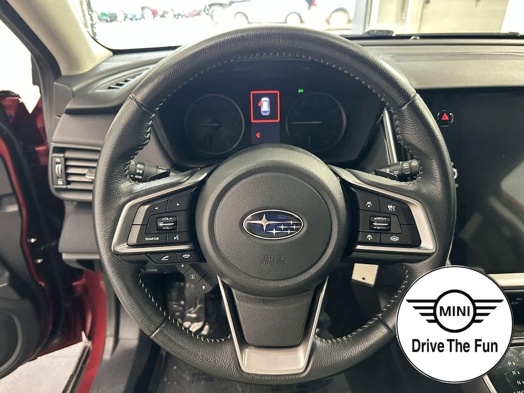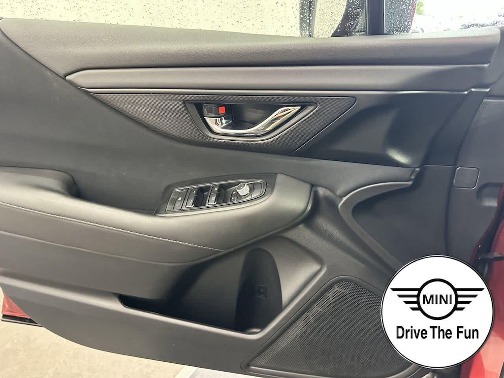 This vehicle is well equipped with many features including: Standard Model, 3.90 Axle Ratio, 4-Wheel Disc Brakes, 6 Speakers, ABS brakes, Air Conditioning, All-Weather Floor Liners, AM/FM radio: SiriusXM, Auto High-beam Headlights, Auto-Dimming Mirror w/Compass, Automatic temperature control, Brake assist, Bumpers: body-color, Cloth Upholstery, Crimson Red Pearl Body Side Molding, Dome Light LED Upgrade, Driver door bin, Dual front impact airbags, Dual front side impact airbags, Electronic Stability Control, Emergency communication system: STARLINK Safety and Security (Subscription Required), Exterior Parking Camera Rear, Four wheel independent suspension, Front anti-roll bar, Front Bucket Seats, Front Center Armrest w/Storage, Front dual zone A/C, Front fog lights, Front reading lights, Fully automatic headlights, Heated door mirrors, Heated Front Bucket Seats, Heated front seats, Illuminated entry, Low tire pressure warning, Occupant sensing airbag, Overhead console, Panic alarm, Power door mirrors, Power driver seat, Power steering, Power windows, Radio: Subaru STARLINK 11.6 Multimedia Plus Sys, Rear anti-roll bar, Rear Bumper Cover, Rear seat center armrest, Rear window defroster, Rear window wiper, Remote keyless entry, Roof rack, Security system, Speed control, Speed-sensing steering, Splash Guards, Split folding rear seat, Spoiler, STARLINK/Apple CarPlay/Android Auto, Steering wheel mounted audio controls, Steering Wheel Paddle Shift Control Switches, Tachometer, Telescoping steering wheel, Tilt steering wheel, Traction control, Trip computer, Turn signal indicator mirrors, Variably intermittent wipers, Wheels: 17 x 7J Black Aluminum Alloy, and Wireless Charger.