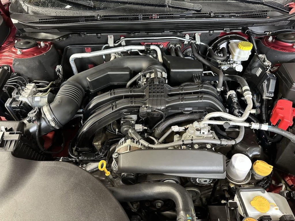 This vehicle is well equipped with many features including: Standard Model, 3.90 Axle Ratio, 4-Wheel Disc Brakes, 6 Speakers, ABS brakes, Air Conditioning, All-Weather Floor Liners, AM/FM radio: SiriusXM, Auto High-beam Headlights, Auto-Dimming Mirror w/Compass, Automatic temperature control, Brake assist, Bumpers: body-color, Cloth Upholstery, Crimson Red Pearl Body Side Molding, Dome Light LED Upgrade, Driver door bin, Dual front impact airbags, Dual front side impact airbags, Electronic Stability Control, Emergency communication system: STARLINK Safety and Security (Subscription Required), Exterior Parking Camera Rear, Four wheel independent suspension, Front anti-roll bar, Front Bucket Seats, Front Center Armrest w/Storage, Front dual zone A/C, Front fog lights, Front reading lights, Fully automatic headlights, Heated door mirrors, Heated Front Bucket Seats, Heated front seats, Illuminated entry, Low tire pressure warning, Occupant sensing airbag, Overhead console, Panic alarm, Power door mirrors, Power driver seat, Power steering, Power windows, Radio: Subaru STARLINK 11.6 Multimedia Plus Sys, Rear anti-roll bar, Rear Bumper Cover, Rear seat center armrest, Rear window defroster, Rear window wiper, Remote keyless entry, Roof rack, Security system, Speed control, Speed-sensing steering, Splash Guards, Split folding rear seat, Spoiler, STARLINK/Apple CarPlay/Android Auto, Steering wheel mounted audio controls, Steering Wheel Paddle Shift Control Switches, Tachometer, Telescoping steering wheel, Tilt steering wheel, Traction control, Trip computer, Turn signal indicator mirrors, Variably intermittent wipers, Wheels: 17 x 7J Black Aluminum Alloy, and Wireless Charger.