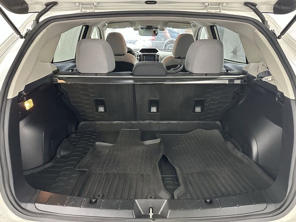 This vehicle is well equipped with many features including: Popular Package #2 (All-Weather Floor Liners, Auto-Dimming Mirror w/Compass & HomeLink, Rear Bumper Cover, Rear Seatback Protector, and Splash Guards), Standard Model (CVT) (EyeSight System, High Grade Combination Meter w/Color LCD Display, Illuminated Storage Tray in Front Center Console, Leather-Wrapped Shift Lever Handle, Overhead Console Shower Light, Rear Seat Reminder, and Tire Pressure Monitoring System), 4-Wheel Disc Brakes, 6 Speakers, ABS brakes, Air Conditioning, Alloy wheels, AM/FM radio: SiriusXM, Anti-whiplash front head restraints, Automatic temperature control, Brake assist, Bumpers: body-color, CD player, Cloth Upholstery, Driver door bin, Dual front impact airbags, Dual front side impact airbags, Electronic Stability Control, Emergency communication system: STARLINK Safety and Security (Subscription Required), Exterior Parking Camera Rear, Four wheel independent suspension, Front anti-roll bar, Front Bucket Seats, Front Center Armrest, Front fog lights, Fully automatic headlights, Heated door mirrors, Heated Front Bucket Seats, Heated front seats, Illuminated entry, Knee airbag, Leather Shift Knob, Low tire pressure warning, Occupant sensing airbag, Overhead airbag, Panic alarm, Passenger vanity mirror, Power door mirrors, Power steering, Power windows, Radio data system, Radio: Subaru STARLINK 6.5 Multimedia Plus System, Rear anti-roll bar, Rear window defroster, Rear window wiper, Remote keyless entry, Security system, Speed control, Speed-sensing steering, Split folding rear seat, Spoiler, STARLINK/Apple CarPlay/Android Auto, Steering wheel mounted audio controls, Subaru STARLINK Smartphone Integration, Tachometer, Telescoping steering wheel, Tilt steering wheel, Traction control, Trip computer, Variably intermittent wipers, and Wheels: 17 x 7.0J Alloy Black w/Machine Finish.