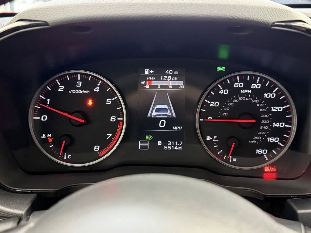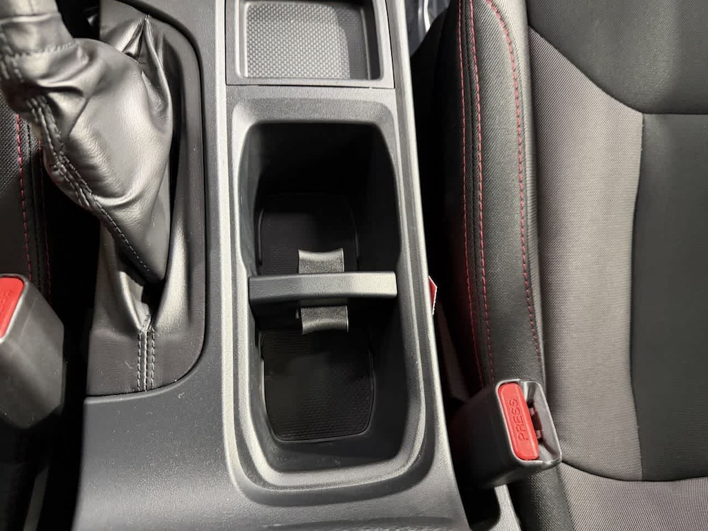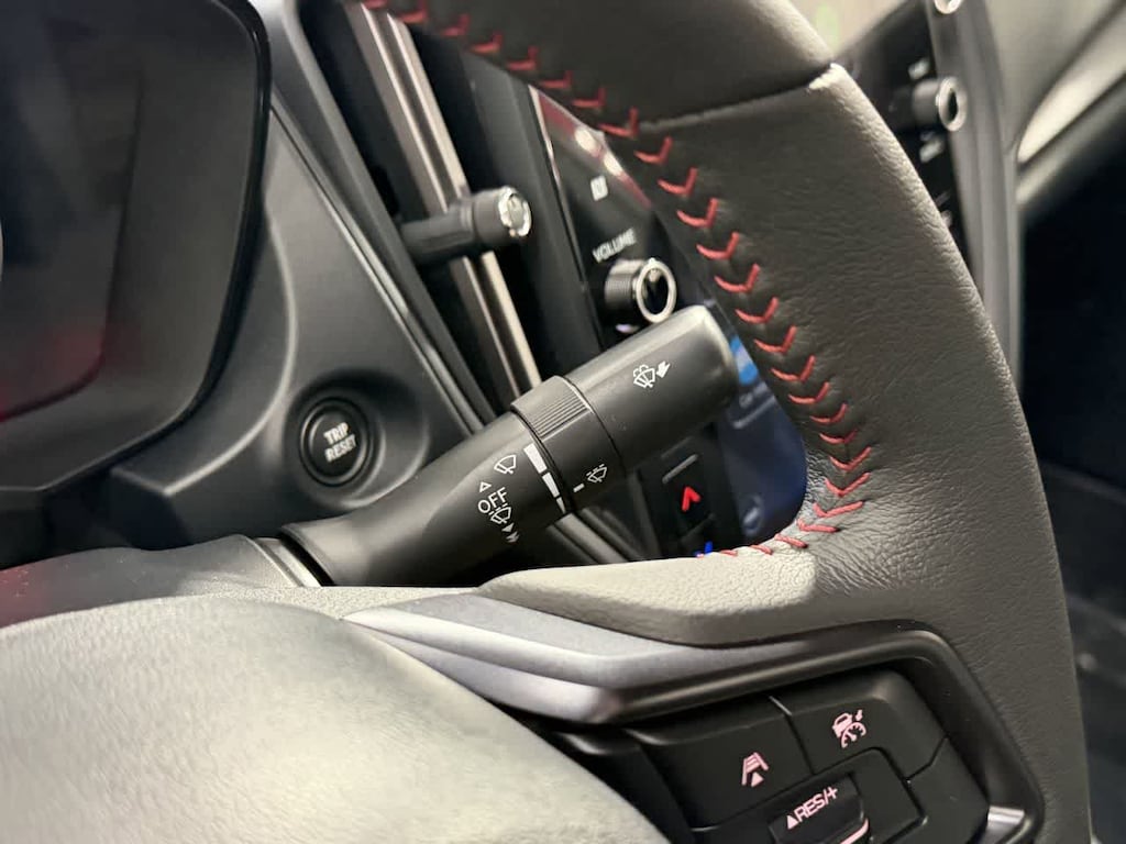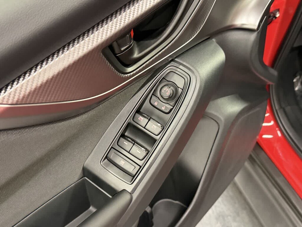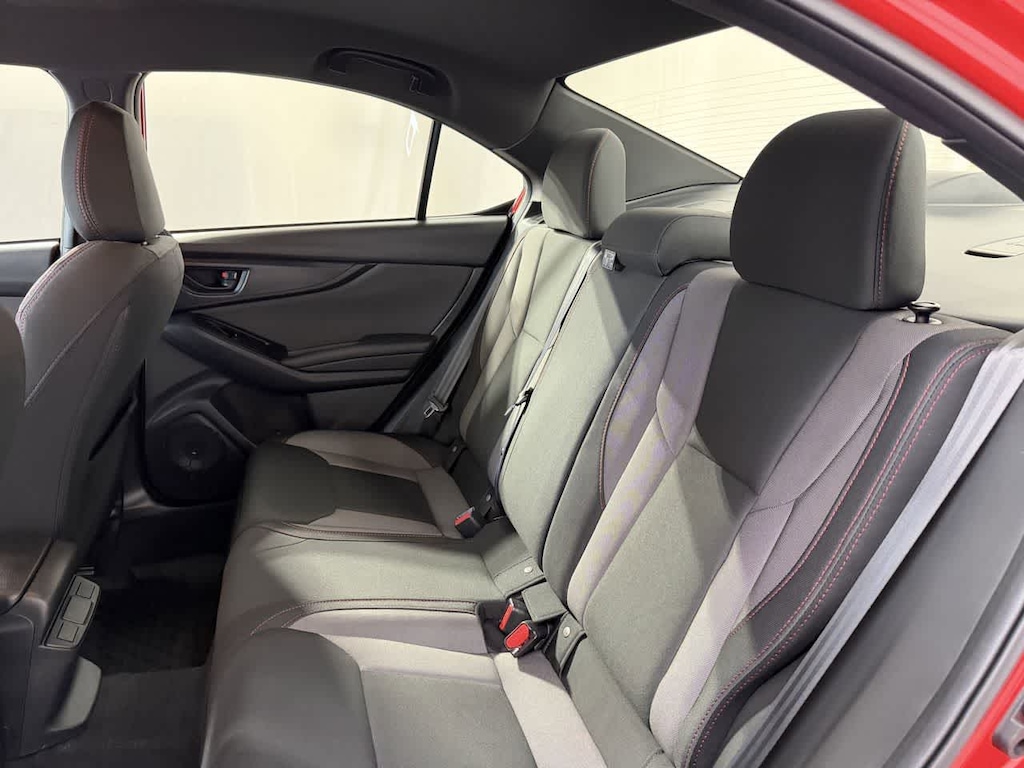 This vehicle is well equipped with many features including: Standard Model, 4-Wheel Disc Brakes, 6 Speakers, ABS brakes, Air Conditioning, Alloy wheels, AM/FM radio: SiriusXM, Auto High-beam Headlights, Auto-dimming Rear-View mirror, Automatic temperature control, Brake assist, Bumpers: body-color, Cloth Upholstery w/Red Stitching, Dual front impact airbags, Dual front side impact airbags, Electronic Stability Control, Emergency communication system: STARLINK Safety and Security (Subscription Required), Exterior Parking Camera Rear, Four wheel independent suspension, Front anti-roll bar, Front Bucket Seats, Front Center Armrest, Front dual zone A/C, Front reading lights, Fully automatic headlights, Knee airbag, Leather Shift Knob, Leather steering wheel, Low tire pressure warning, Occupant sensing airbag, Outside temperature display, Overhead airbag, Overhead console, Panic alarm, Passenger door bin, Performance Design Front Bucket Seats, Power door mirrors, Power steering, Power windows, Radio data system, Radio: Subaru STARLINK 11.6 Multimedia Plus Sys, Rear window defroster, Remote keyless entry, Security system, Speed control, Speed-sensing steering, Split folding rear seat, Sport steering wheel, STARLINK/Apple CarPlay/Android Auto, Steering wheel mounted audio controls, Tachometer, Telescoping steering wheel, Tilt steering wheel, Traction control, Trip computer, Variably intermittent wipers, and Wheels: 17 x 8 Gray Finish Aluminum Alloy.