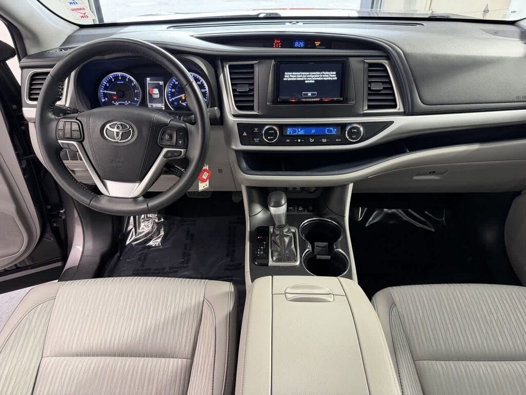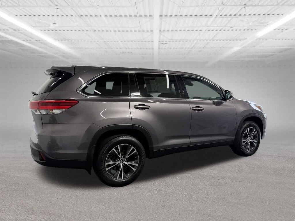 Gray 2019 Toyota CARFAX One-Owner. Clean CARFAX. Highlander LE Plus AWD 8-Speed Automatic Electronic with ECT-i 3.5L V6 Dealer Detailed, Dealer Inspected, Multi Point Safety and Mechanical Inspection Performed by Certified Technician, Certified by AutoCheck - No Accidents, Certified by AutoCheck - One Owner, Many Extras!, AWD, 3rd row seats: split-bench, 4-Wheel Disc Brakes, 6 Speakers, ABS brakes, Active Cruise Control, Air Conditioning, Alloy wheels, AM/FM radio: SiriusXM, Auto High-beam Headlights, Automatic temperature control, Brake assist, Bumpers: body-color, CD player, Delay-off headlights, Driver vanity mirror, Dual front impact airbags, Dual front side impact airbags, Electronic Stability Control, Exterior Parking Camera Rear, Fabric Seat Trim w/Softex, Four wheel independent suspension, Front anti-roll bar, Front Bucket Seats, Front Center Armrest, Front dual zone A/C, Front fog lights, Fully automatic headlights, Heated door mirrors, Illuminated entry, Leather Shift Knob, Low tire pressure warning, Occupant sensing airbag, Outside temperature display, Panic alarm, Passenger vanity mirror, Power door mirrors, Power driver seat, Power Liftgate, Power steering, Power windows, Radio: Entune Audio Plus w/Connected Navigation, Rear air conditioning, Rear window defroster, Rear window wiper, Reclining 3rd row seat, Remote keyless entry, Satellite Radio, Speed control, Speed-sensing steering, Split folding rear seat, Spoiler, Steering wheel mounted audio controls, Traction control, Turn signal indicator mirrors, Variably intermittent wipers, Wheels: 18 Split 5-Spoke Machined-Face Alloy.