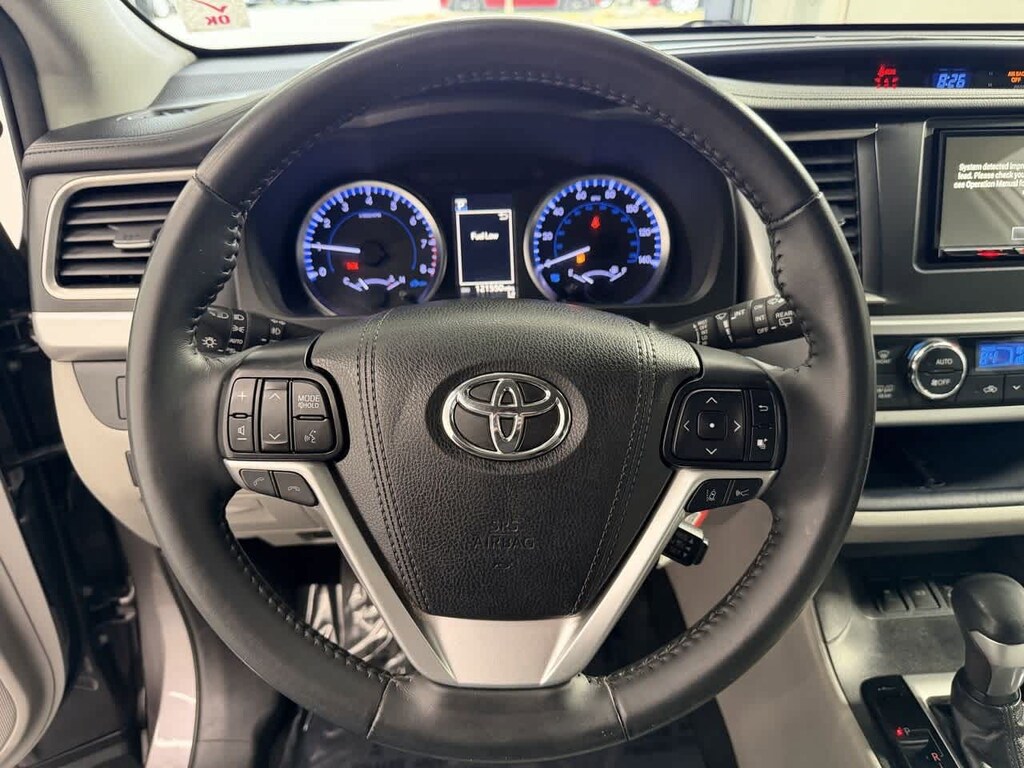 This vehicle is well equipped with many features including: AWD, 3rd row seats: split-bench, 4-Wheel Disc Brakes, 6 Speakers, ABS brakes, Active Cruise Control, Air Conditioning, Alloy wheels, AM/FM radio: SiriusXM, Auto High-beam Headlights, Automatic temperature control, Brake assist, Bumpers: body-color, CD player, Delay-off headlights, Driver vanity mirror, Dual front impact airbags, Dual front side impact airbags, Electronic Stability Control, Exterior Parking Camera Rear, Fabric Seat Trim w/Softex, Four wheel independent suspension, Front anti-roll bar, Front Bucket Seats, Front Center Armrest, Front dual zone A/C, Front fog lights, Fully automatic headlights, Heated door mirrors, Illuminated entry, Leather Shift Knob, Low tire pressure warning, Occupant sensing airbag, Outside temperature display, Panic alarm, Passenger vanity mirror, Power door mirrors, Power driver seat, Power Liftgate, Power steering, Power windows, Radio: Entune Audio Plus w/Connected Navigation, Rear air conditioning, Rear window defroster, Rear window wiper, Reclining 3rd row seat, Remote keyless entry, Satellite Radio, Speed control, Speed-sensing steering, Split folding rear seat, Spoiler, Steering wheel mounted audio controls, Traction control, Turn signal indicator mirrors, Variably intermittent wipers, and Wheels: 18 Split 5-Spoke Machined-Face Alloy.