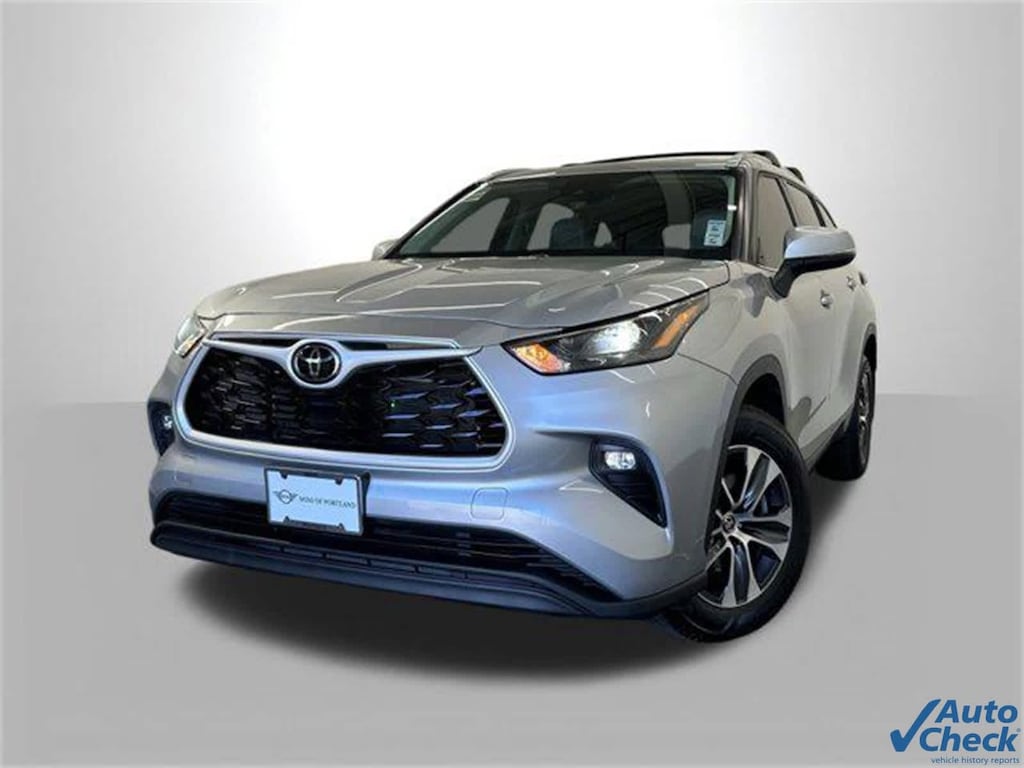 Silver 2022 Toyota Clean CARFAX. Highlander XLE AWD 8-Speed Automatic 3.5L V6 DOHC Dealer Detailed, Fluid Change, Dealer Inspected, Multi Point Safety and Mechanical Inspection Performed by Certified Technician, Certified by AutoCheck - No Accidents, AWD, 3rd row seats: split-bench, 4-Wheel Disc Brakes, 6 Speakers, ABS brakes, Air Conditioning, AM/FM radio: SiriusXM, Apple CarPlay/Android Auto, Auto High-beam Headlights, Auto-dimming Rear-View mirror, Automatic temperature control, Black Emblem Overlays (TMS), Brake assist, Bumpers: body-color, Delay-off headlights, Dual front impact airbags, Dual front side impact airbags, Electronic Stability Control, Emergency communication system: Safety Connect with 1-year trial, Exterior Parking Camera Rear, Four wheel independent suspension, Front anti-roll bar, Front Bucket Seats, Front Center Armrest, Front dual zone A/C, Front fog lights, Front reading lights, Fully automatic headlights, Garage door transmitter: HomeLink, Heated door mirrors, Heated Front Bucket Seats, Heated front seats, Illuminated entry, Knee airbag, Leather Shift Knob, Low tire pressure warning, Occupant sensing airbag, Outside temperature display, Overhead console, Panic alarm, Passenger vanity mirror, Power door mirrors, Power driver seat, Power Liftgate, Power moonroof, Power passenger seat, Power steering, Power windows, Radio: Audio Plus, Rear air conditioning, Rear reading lights, Rear window defroster, Rear window wiper, Reclining 3rd row seat, Remote keyless entry, Roof rack: rails only, Security system, SofTex Seat Trim, Speed control, Speed-sensing steering, Split folding rear seat, Spoiler, Steering wheel mounted audio controls, Tachometer, Telescoping steering wheel, Tilt steering wheel, Traction control, Trip computer, Turn signal indicator mirrors, Variably intermittent wipers, Wheels: 18 Machined-Finish Alloy.