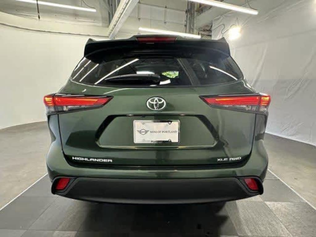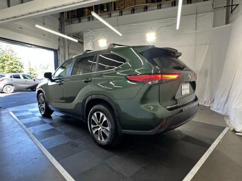 Green 2023 Toyota CARFAX One-Owner. Highlander L AWD 8-Speed Automatic 2.4L I4 PDI Turbocharged DOHC 16V LEV3-SULEV30 265hp Dealer Detailed, Fluid Change, Dealer Inspected, Multi Point Safety and Mechanical Inspection Performed by Certified Technician, Many Extras!, AWD, 3.329 Axle Ratio, 3rd row seats: split-bench, 4-Wheel Disc Brakes, 6 Speakers, ABS brakes, Air Conditioning, Alloy wheels, AM/FM radio: SiriusXM, Auto High-beam Headlights, Automatic temperature control, Brake assist, Bumpers: body-color, Delay-off headlights, Driver vanity mirror, Dual front impact airbags, Dual front side impact airbags, Electronic Stability Control, Emergency communication system: Safety Connect (up to 10-year trial subscription), Exterior Parking Camera Rear, Four wheel independent suspension, Front Bucket Seats, Front Center Armrest, Front dual zone A/C, Front reading lights, Fully automatic headlights, Heated door mirrors, Illuminated entry, Knee airbag, Low tire pressure warning, Occupant sensing airbag, Outside temperature display, Overhead airbag, Overhead console, Panic alarm, Passenger vanity mirror, Power door mirrors, Power driver seat, Power steering, Power windows, Radio: 8 Toyota Audio Multimedia, Rear air conditioning, Rear anti-roll bar, Rear reading lights, Rear window defroster, Rear window wiper, Reclining 3rd row seat, Remote keyless entry, Speed control, Speed-sensing steering, Split folding rear seat, Spoiler, Steering wheel mounted audio controls, Tachometer, Telescoping steering wheel, Tilt steering wheel, Traction control, Trip computer, Turn signal indicator mirrors, Variably intermittent wipers.