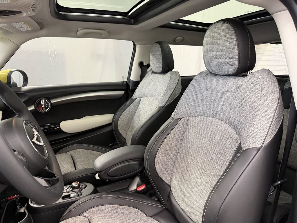 This vehicle is well equipped with many features including: 4-Wheel Disc Brakes, 6 Speakers, 6.5 Connected Touch Screen, ABS brakes, Air Conditioning, Alloy wheels, AM/FM Radio, AM/FM radio, Apple CarPlay Compatibility, Auto High-beam Headlights, Automatic temperature control, BMW Assist eCall, BMW TeleServices, Brake assist, Bumpers: body-color, ConnectedDrive Services, Delay-off headlights, Driver vanity mirror, Dual front impact airbags, Dual front side impact airbags, eDrive Services, Electronic Stability Control, Emergency communication system: MINI Intelligent Emergency Call, Enhanced USB & Bluetooth, Exterior Parking Camera Rear, Floor Mats, Four wheel independent suspension, Front anti-roll bar, Front Bucket Seats, Front dual zone A/C, Front fog lights, Front reading lights, Fully automatic headlights, Heated door mirrors, Heated Front Seats, Heated front seats, Illuminated entry, Knee airbag, Leather steering wheel, Low tire pressure warning, MINI Connected, Navigation System, Occupant sensing airbag, Outside temperature display, Overhead airbag, Overhead console, Passenger vanity mirror, Power door mirrors, Power steering, Power windows, Radio data system, Rain sensing wipers, Rear anti-roll bar, Rear window defroster, Rear window wiper, Remote keyless entry, Remote Services, SensaTec Leatherette Upholstery, Speed control, Speed-sensing steering, Speed-Sensitive Wipers, Split folding rear seat, Spoiler, Sport Seats, Sport steering wheel, Steering wheel mounted audio controls, Telescoping steering wheel, Tilt steering wheel, Traction control, Trip computer, Variably intermittent wipers, and Wheels: 16 x 6.5 MINI Electric Revolite Spoke.