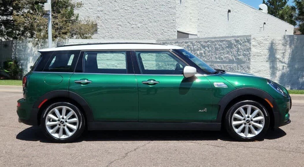 Certified. British Racing Green 2023 MINI Clean CARFAX. Cooper S Clubman AWD 8-Speed Automatic Sport 2.0L I4 DOHC Turbocharged Dealer Detailed, Fluid Change, Dealer Inspected, Multi Point Safety and Mechanical Inspection Performed by Certified Technician, Certified by AutoCheck - No Accidents, Many Extras!, 4-Wheel Disc Brakes, 6 Speakers, ABS brakes, Active Driving Assistant, Advanced Real-Time Traffic Information, Air Conditioning, AM/FM Radio, AM/FM radio: SiriusXM, Apple CarPlay Compatibility, Auto High-beam Headlights, Auto-Dimming Rear-View Mirror, Automatic temperature control, Body Color Roof, Brake assist, Bumpers: body-color, Cloth/Leatherette Upholstery, Comfort Access Keyless Entry, ConnectedDrive Services, Cross Punch Leather Upholstery, Delay-off headlights, Driver vanity mirror, Dual front impact airbags, Dual front side impact airbags, Dual Zone Auto Climate Control, Dynamic Digital Instrument Cluster, Electronic Stability Control, Emergency communication system: MINI Intelligent Emergency Call, Enhanced USB & Bluetooth, Exterior Parking Camera Rear, Four wheel independent suspension, Front anti-roll bar, Front Bucket Seats, Front Center Armrest, Front dual zone A/C, Front fog lights, Front Sport Seats, Fully automatic headlights, Heated door mirrors, Heated Front Seats, Heated front seats, Heated steering wheel, Illuminated entry, Included Content 2, Leather steering wheel, Low tire pressure warning, Media Display (6UF), MINI Assist eCall, MINI Connected, MINI Driving Modes, MINI Excitement Package, MINI Nav