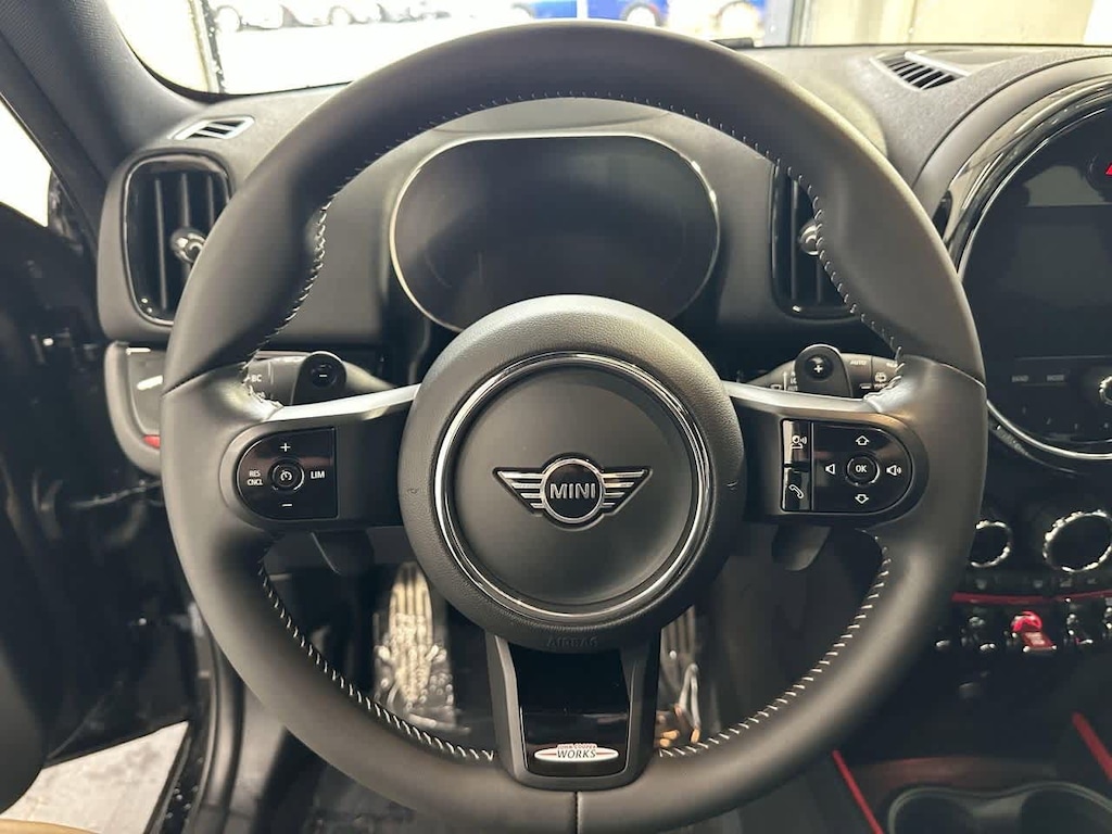 This vehicle is well equipped with many features including: Iconic Trim (DISC) (Advanced Real-Time Traffic Information, Alarm System (DISC), Apple CarPlay Compatibility, ConnectedDrive Services, Dynamic Damper Control, Dynamic Digital Instrument Cluster, Enhanced USB & Bluetooth, harman/kardonî Logic 7î Digital Surround, Heated Steering Wheel, Interior Surfaces Piano Black, Leather Cross Punch Upholstery, MINI Assist eCall, MINI Connected, MINI Connected XL, MINI Head-Up Display, MINI Navigation, MINI TeleServices, Panoramic Moonroof, Parking Assistant, Piano Black Exterior Trim, Power Front Seats, Radio Control US, Radio: Touchscreen Navigation Plus (DISC), Remote Services, Roof in Body Color, Sirius XM Satellite Radio, Universal Garage-Door Opener, Wheels: 19 x 8.0 JCW Circuit Spoke 2-Tone, and Wireless Charging), MINI Excitement Package, Storage Package, 12 Speakers, 4-Wheel Disc Brakes, ABS brakes, Active Driving Assistant, Air Conditioning, AM/FM Radio, AM/FM radio: SiriusXM, Auto High-beam Headlights, Auto-dimming Rear-View mirror, Automatic temperature control, Brake assist, Bumpers: body-color, Cloth/Leatherette Upholstery, Delay-off headlights, Dual front impact airbags, Dual front side impact airbags, Electronic Stability Control, Emergency communication system: MINI Assist eCall, Exterior Parking Camera Rear, Four wheel independent suspension, Front Center Armrest, Front Center Armrest w/Storage, Front dual zone A/C, Front reading lights, Front Sport Seats, Fully automatic headlights, harman/kardonî Speakers, Heated door mirrors, Heated Front Seats, Heated front seats, Heated Steering Wheel Credit (DISC), Illuminated entry, Interior Surfaces JCW Piano Black, John Cooper Works Sport Seats, Knee airbag, Leather steering wheel, Low tire pressure warning, Occupant sensing airbag, Outside temperature display, Overhead airbag, Overhead console, Passenger door bin, Passenger Seat Height Adjustment, Passenger vanity mirror, Power door mirrors, Power moonroof, Power steering, Power windows, Privacy Glass, Radio data system, Rain sensing wipers, Rear anti-roll bar, Rear window defroster, Rear window wiper, Rear-View Camera, Remote keyless entry, Speed control, Speed-sensing steering, Speed-Sensitive Wipers, Split folding rear seat, Spoiler, Sport steering wheel, Sport Suspension, Steering wheel mounted audio controls, Tachometer, Telescoping steering wheel, Tilt steering wheel, Traction control, Trip computer, Variably intermittent wipers, and Wheels: 18 x 8.0 JCW Grip Spoke Black Alloy.